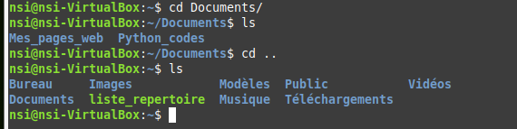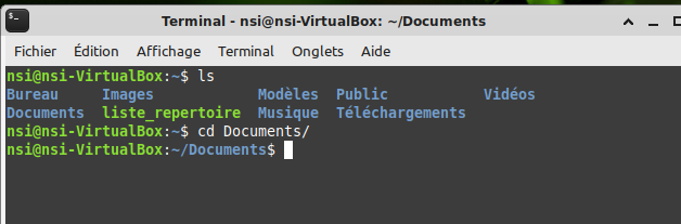 Exemple de chemin absolu: pour aller dans le répertoire Documents de nsiuser :