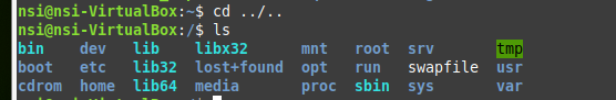 cd ../.. : remonter vers la racine / équivalent de cd /