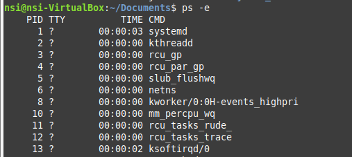 Ouvrir un deuxième terminal en redimensionnant avec un affichage assez large et tester la commande ps au