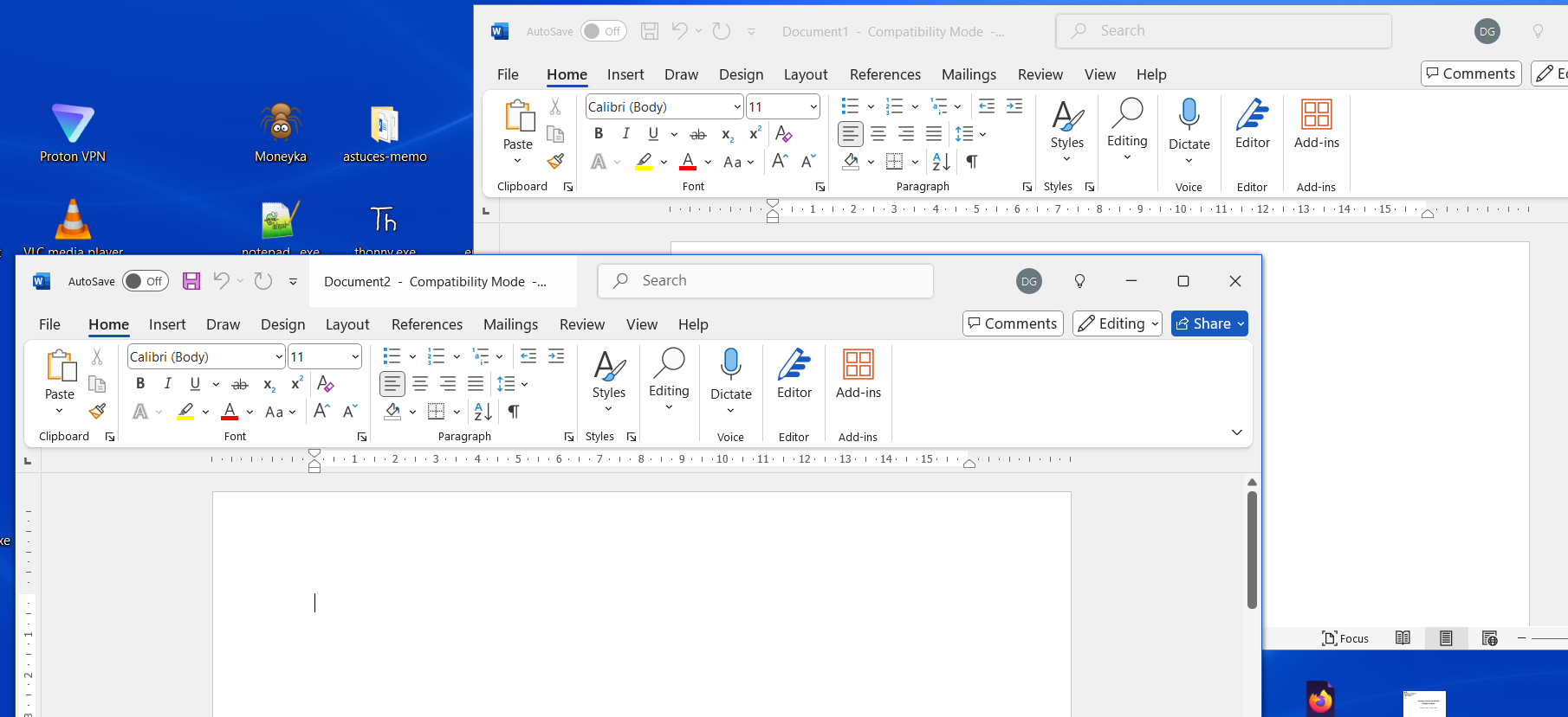 Ci_dessous, deux instances différentes de Word en cours d'exécution sur le PC: