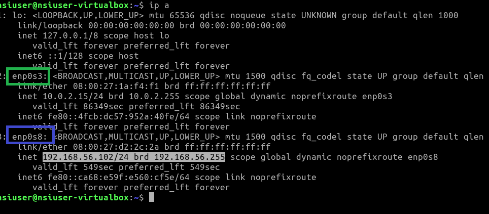 Vous pouvez voir le nom de l'interface réseau de la forme enp..s.. ici enp0s3