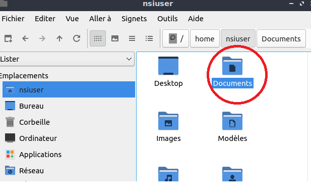 - Sur la machine lubuntu, ouvrir le dossier nsiuser