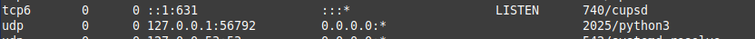 - Relancez uniquement le fichier récepteur.py puis ouvrez une console et lancez la commande sudo netstat -pantu