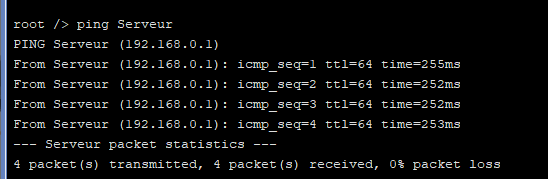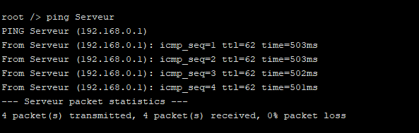 a. Tester la connectivité entre le client_lan1 et le Serveur avec un ping, conclusion?