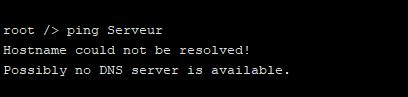 e. Tester la résolution DNS entre le client_lan3 et le Serveur. Dans l'image ci-dessous ça ne marche pas: