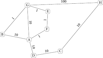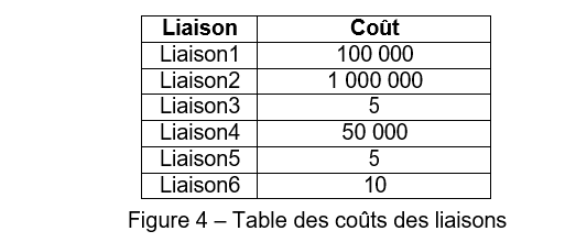 Par convention, le coût d’une liaison directe entre un routeur et un site est 0. On donne le coût des liaisons dans la figure 4.