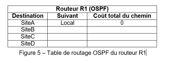 - Recopier et compléter la table de routage OSPF du routeur R1 (voir figure 5).