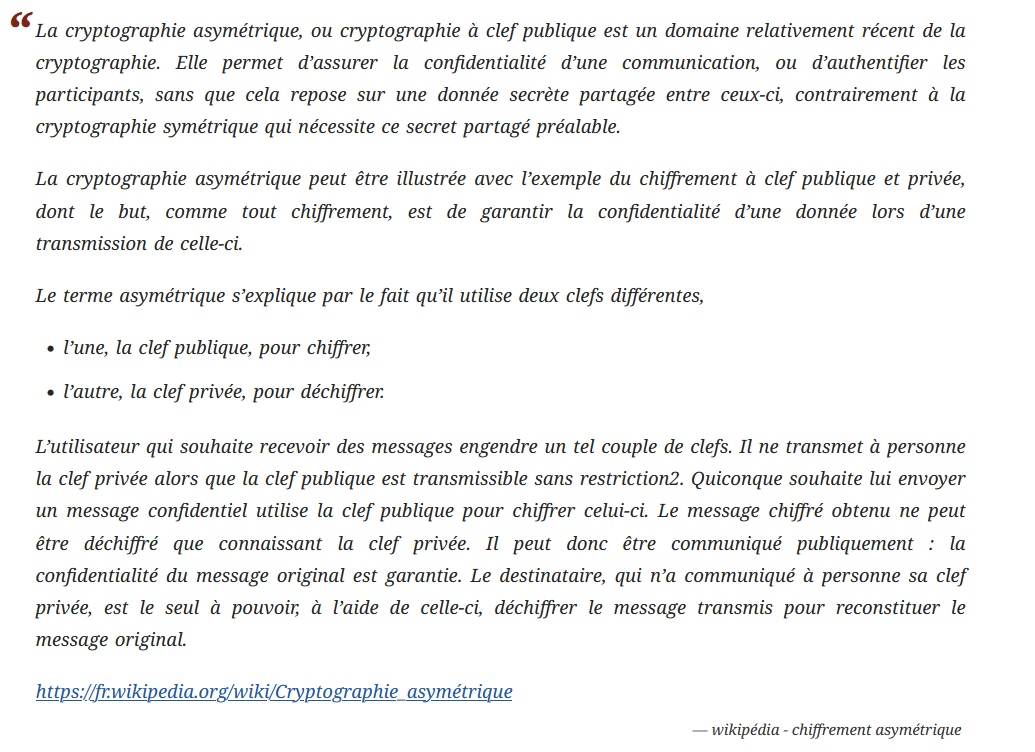 Pour que cela fonctionne, il faut que la paire clé publique/clé privée ait une propriété particulière.